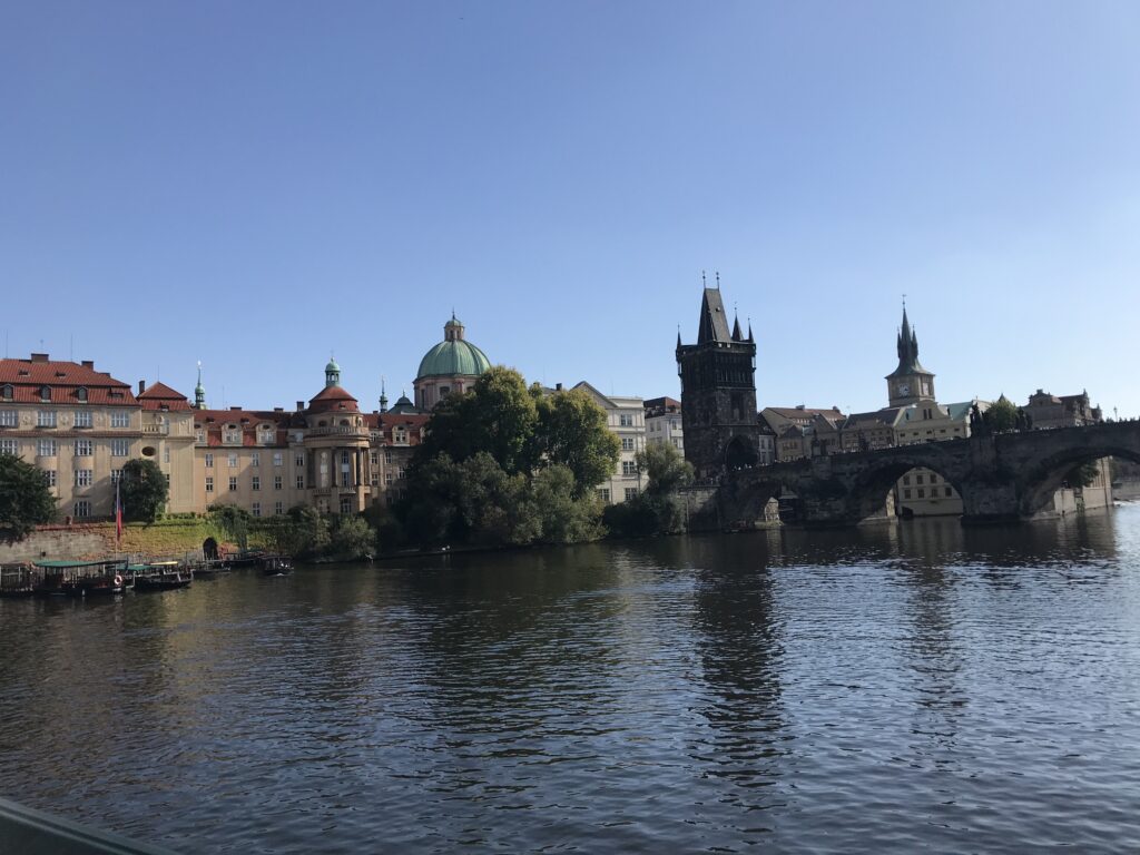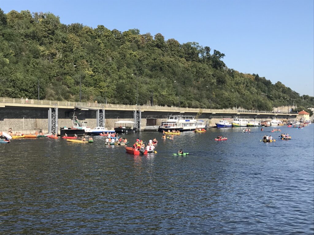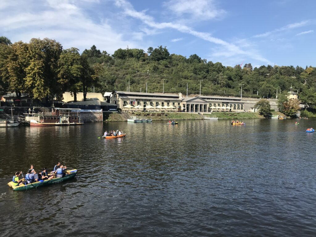 Der beste Programm war aus meiner Sicht die Flussfahrt auf der Moldau. Innerhalb von einer Stunde haben wir Sehenswürdigkeiten wie die Karlsbrücke, das Nationaltheater und die Prager Burg gesehen. Weil am 28. Oktober tschechischer Nationalfeiertag ist, wimmelte es auf der Moldau von Schlauchbooten, Kanus und Flößen mit feiernden Menschen. ( Käthe)