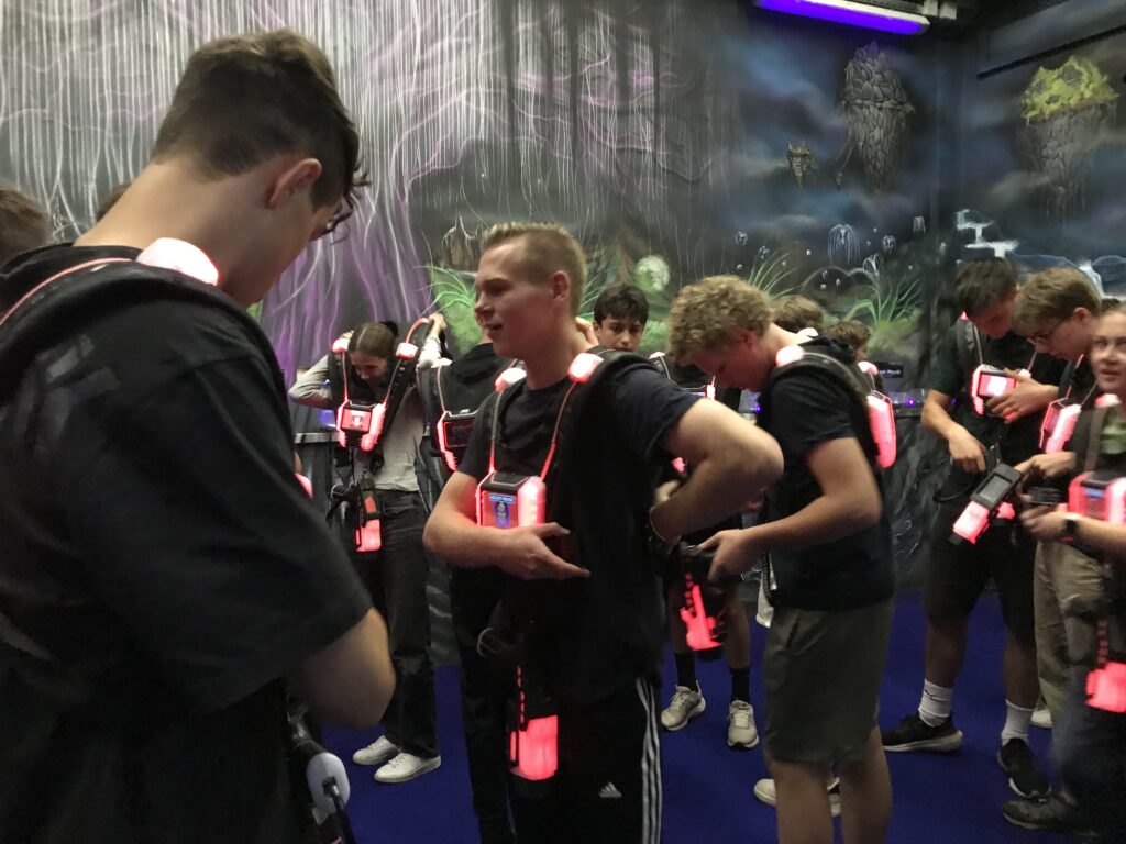 An unserem letzten Tag in Prag hatten wir nur noch einen Programmpunkt auf der Liste: Laser Tag. Wir trafen uns in der ehemaligen Braník Brauerei. Viele von uns hatten keine Erfahrung mit dem Spiel und wir waren sehr gespannt. Als Ausrüstung bekam jeder eine Weste mit einer Laserpistole und den Namen einer Filmfigur, zum Beispiel Harry Potter, Barbie oder Iron Man. Dann wurden uns die Regeln erklärt und wir in vier Teams eingeteilt. Das Ziel jedes Teams war natürlich, die meisten Leute aus den gegnerischen Teams zu treffen und selbst gut auszuweichen. Jedes Team entwickelte seine eigene Taktik und schnell war die erste Runde vorbei. Begeistert und erschöpft machten wir eine kurze Pause, bevor wir noch zwei Runde mit zwei größeren Teams spielten.